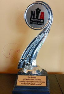 Award winner as “Outstanding Supporting Actor (Junior Division)” by “National Youth Arts” for my role as “Sebastian” in my first musical “The Little Mermaid”.